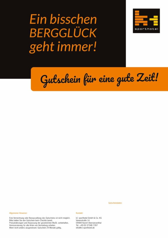 Mehrzweckgutschein - für diese oder andere Leistungen der k1 sporthotel GmbH & Co. KG zum entsprechend bezahlten Betrag einlösbar; nicht anrechenbar auf Leistungen Dritter (z. B. booking.com)